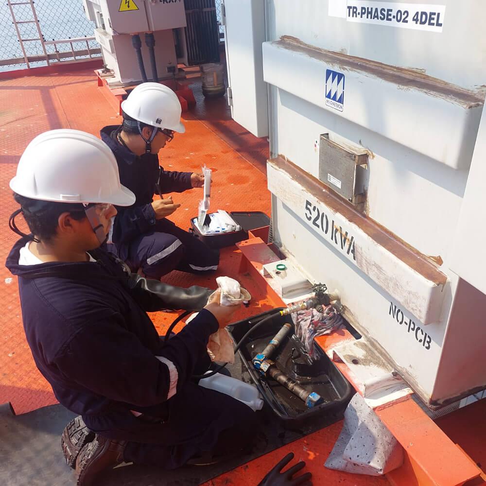 - Análisis y tratamiento de aceite dieléctrico cuando aplica