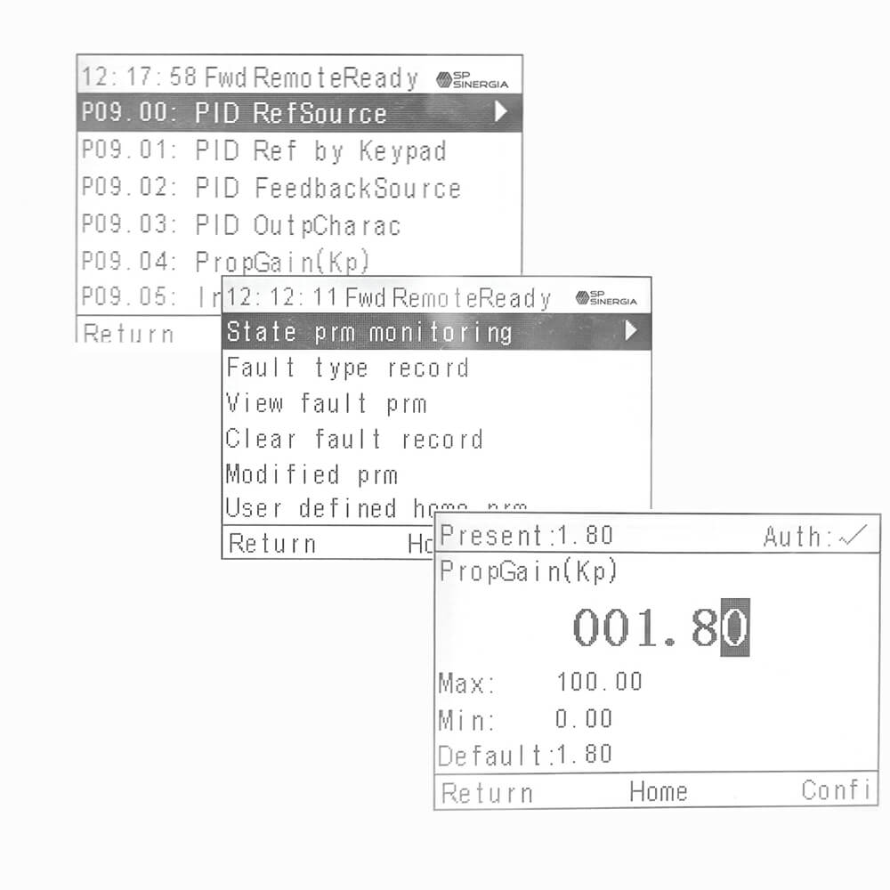 - Control Digital Vectorial: Gracias a un procesador DSP de última generación, el variador ejecuta cálculos en tiempo real para ajustar la frecuencia, el voltaje y el ángulo del campo magnético del motor.